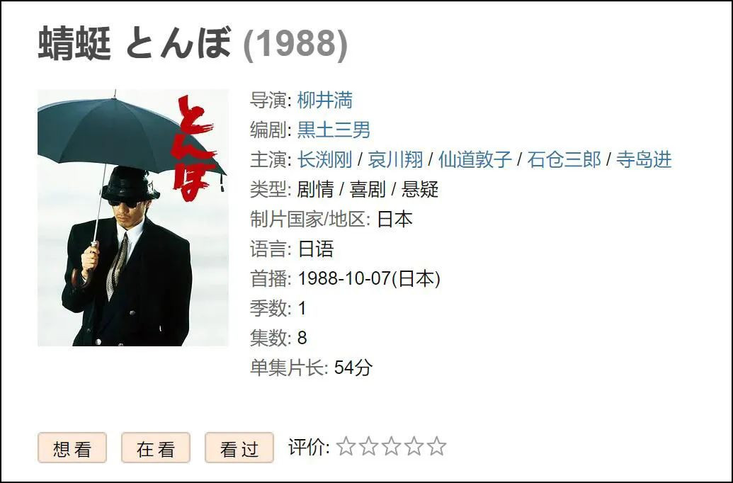 後來發現1988年有一部經典的黑道題材電視劇,叫《とんぼ》(蜻蛉).