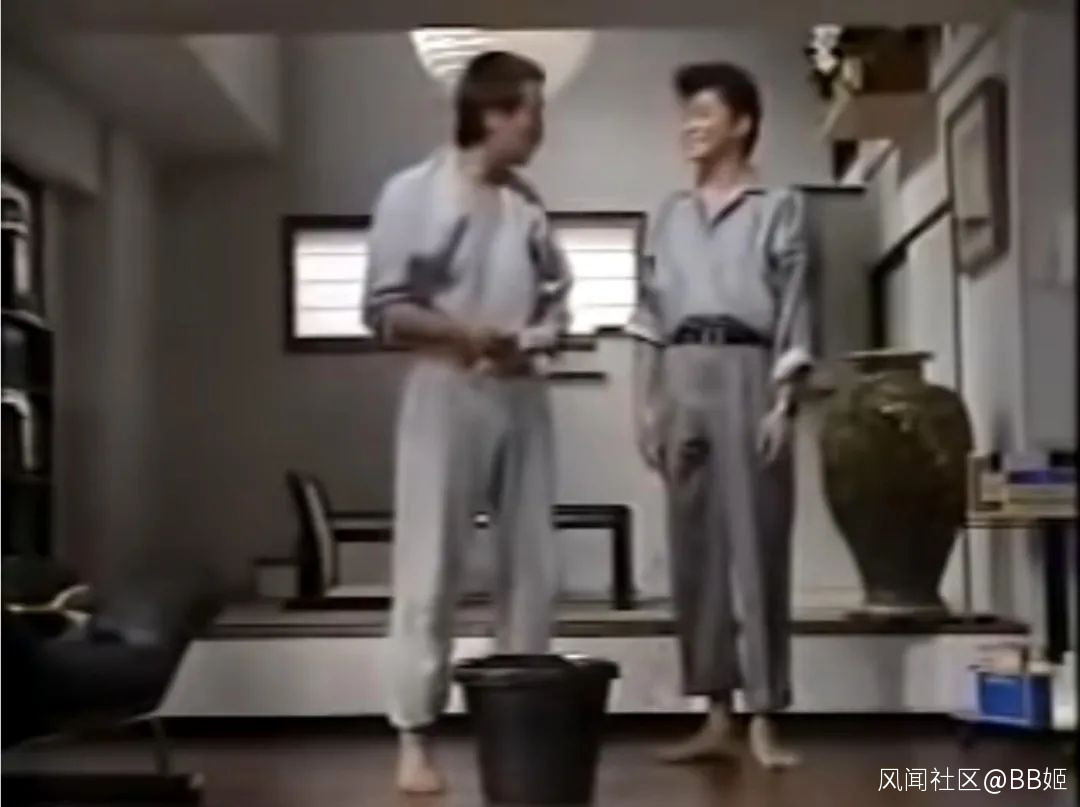 某天,主角的弟弟在家裏一邊聽着小歌蹬着腿,一邊打掃衞生,被晨跑歸來的大哥撞見。