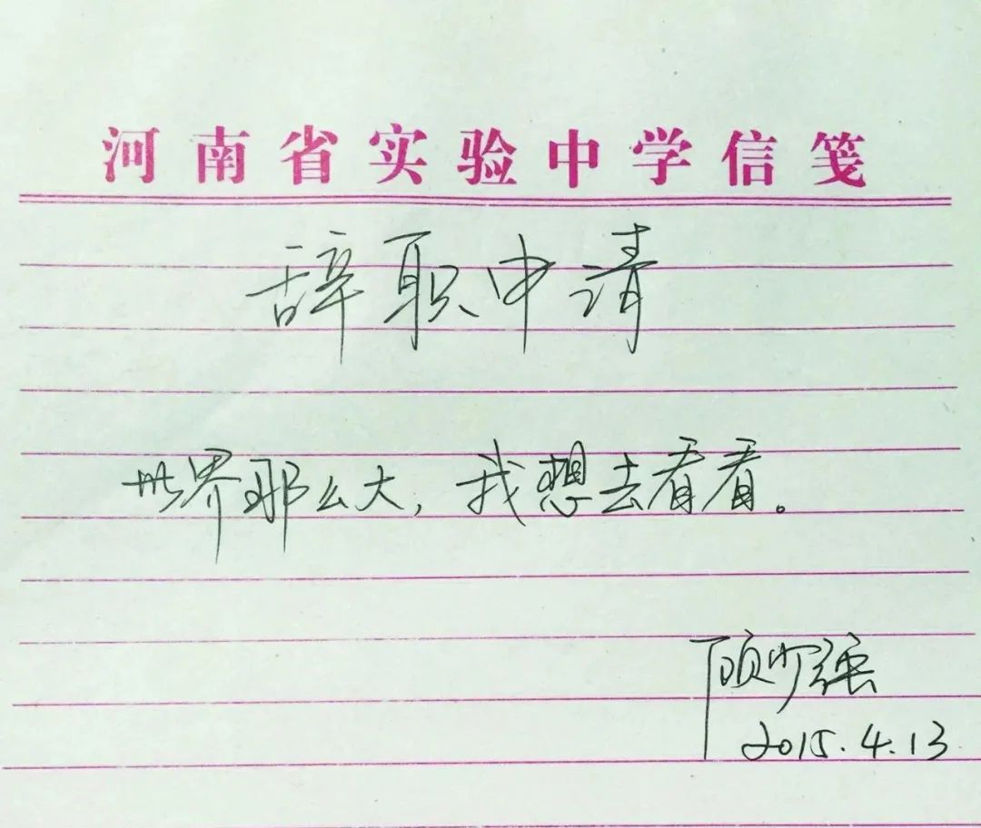 2015年4月13日,顧少強走進校領導的辦公室,遞上了一封辭職信,繼而告別了她工作11年的學校。“世界那麼大,我想去看看。”