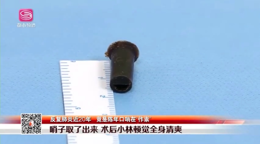 林先生6歲時不小心吞下一個哨子,怕父母責罵,一直瞞着不敢説,這一瞞就瞞了20年。
