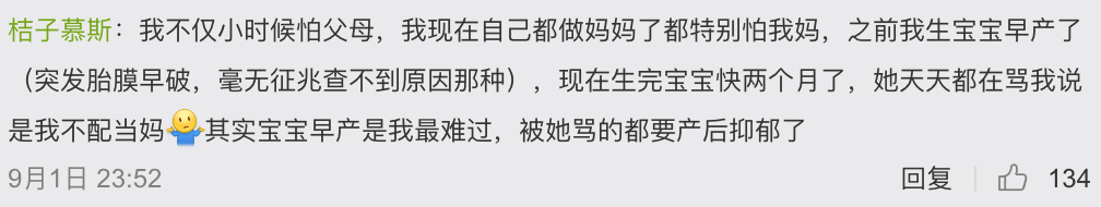 **有人甚至當媽了還怕自己的媽媽,**生孩子早產,天天被罵不配當媽,快要產後抑鬱了……