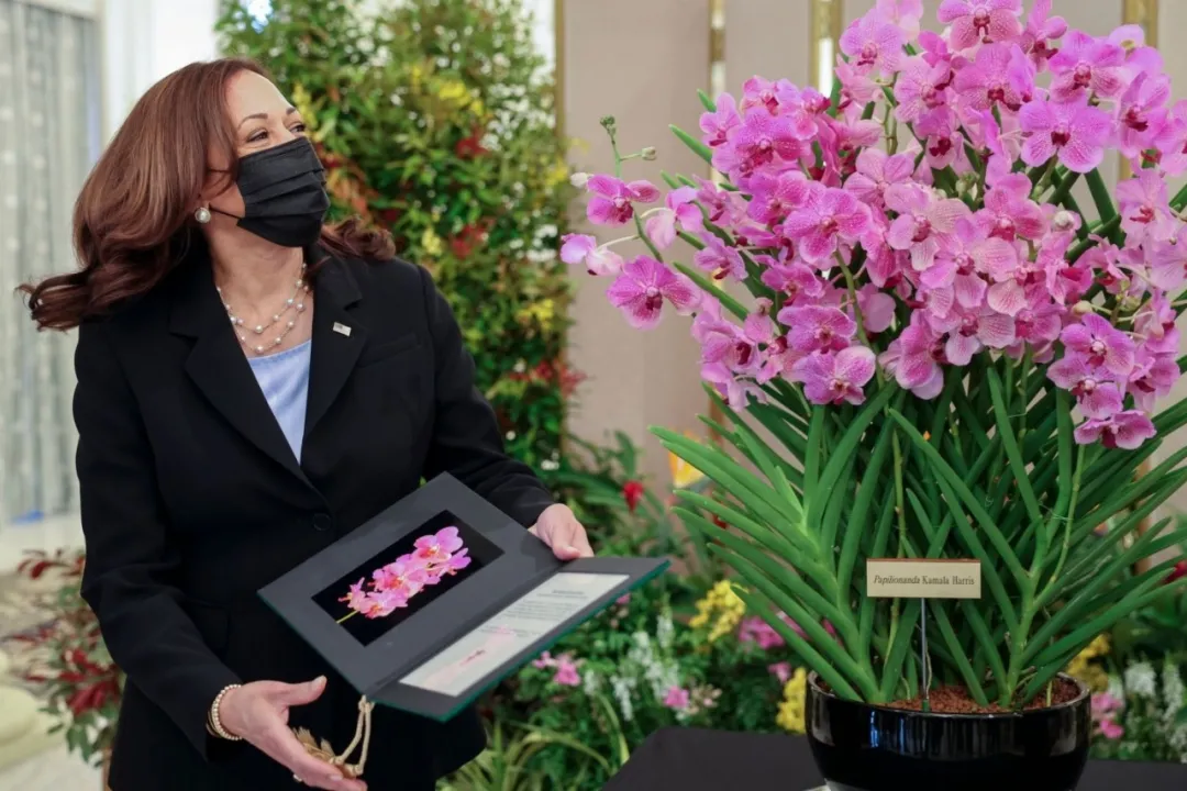 ▲2021年8月23日,美國副總統哈里斯訪問新加坡,與以她名字命名的蘭花合影。