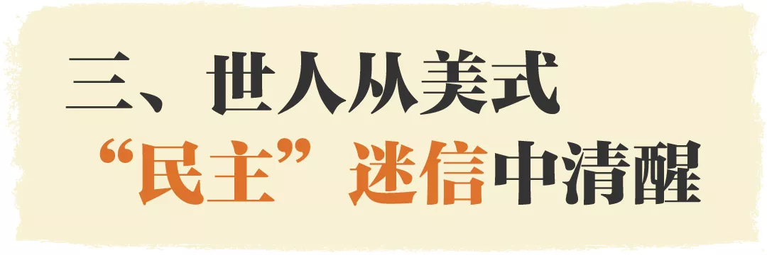 **美國對他國許下的“民主夢”絕非美夢,而是幫助美國企業開闢市場,搶奪資源,拓展美國私利。**這恰恰是最大的不民主,是專制、是霸權、是極權。從阿富汗撤軍只是美式民主敗局的“上半場”,未來美國可能遭遇多米諾骨牌式潰敗