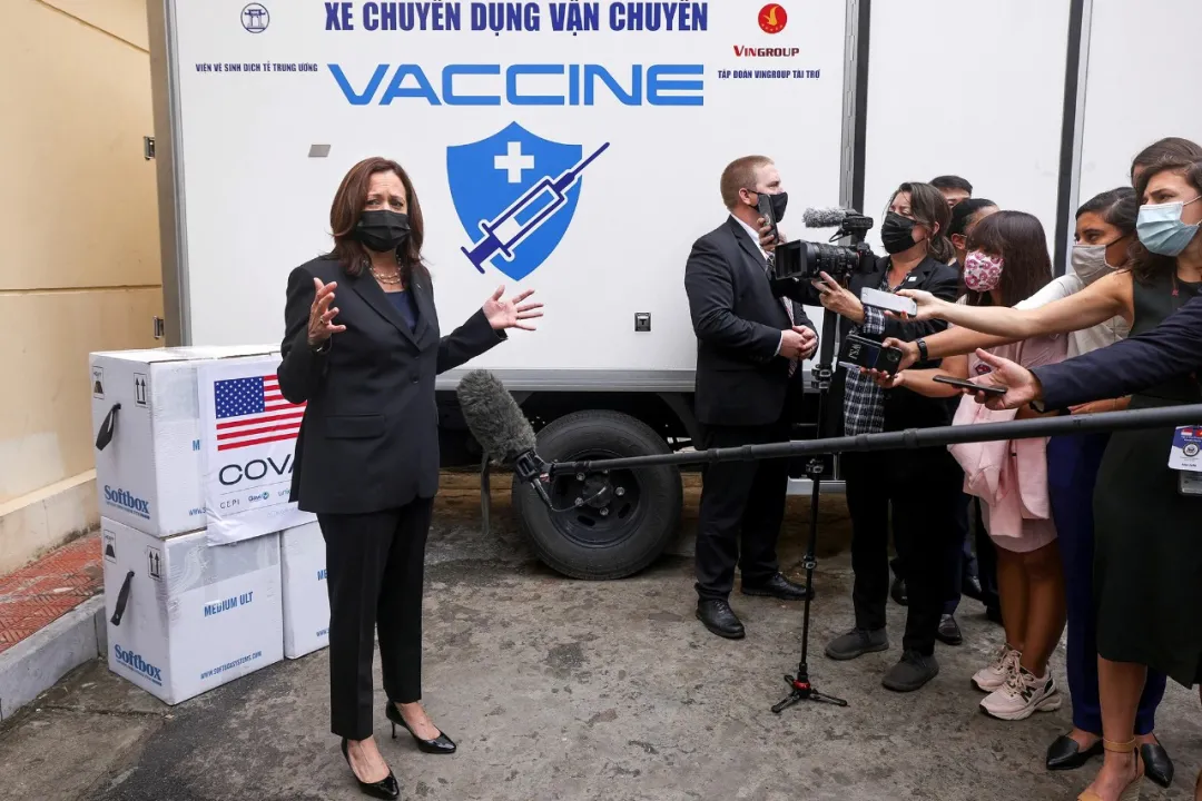 ▲2021年8月26日,美國副總統哈里斯訪問越南國家衞生和流行病學研究所,迎接美國向越南提供的疫苗。
