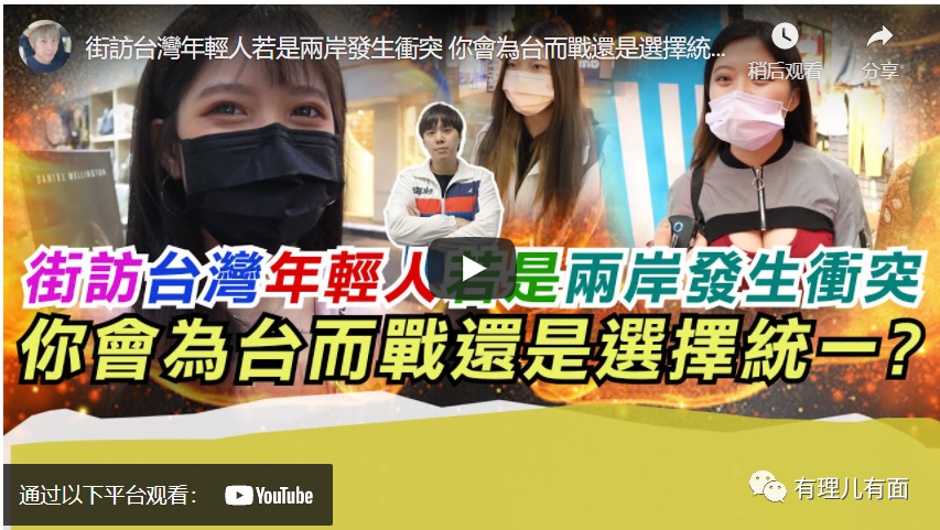 8月25日,台灣知名自媒體人“寒國人”發佈的新視頻“街訪台灣年輕人若是兩岸發生衝突,你會為台而戰還是選擇統一”,其中設置的兩個問題,台灣島內年輕人的回答,就很有代表性。