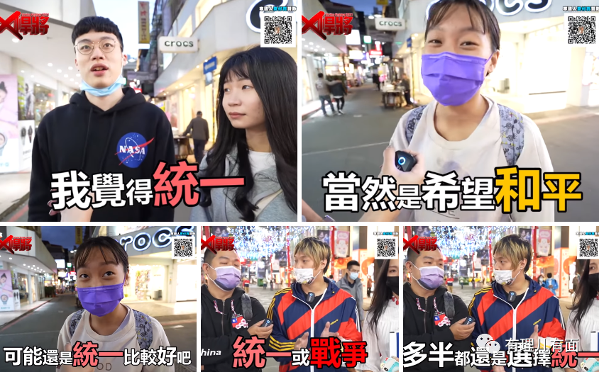 一位受訪的高中生表示,兩岸戰力不在一個檔次上,面對解放軍強大能力,台灣“武力上是沒有辦法對抗”,如果發生戰爭,她會“躲到山上”。“為人民安全,可能還是統一比較好”、“其實戰到最後有可能還是統一”。