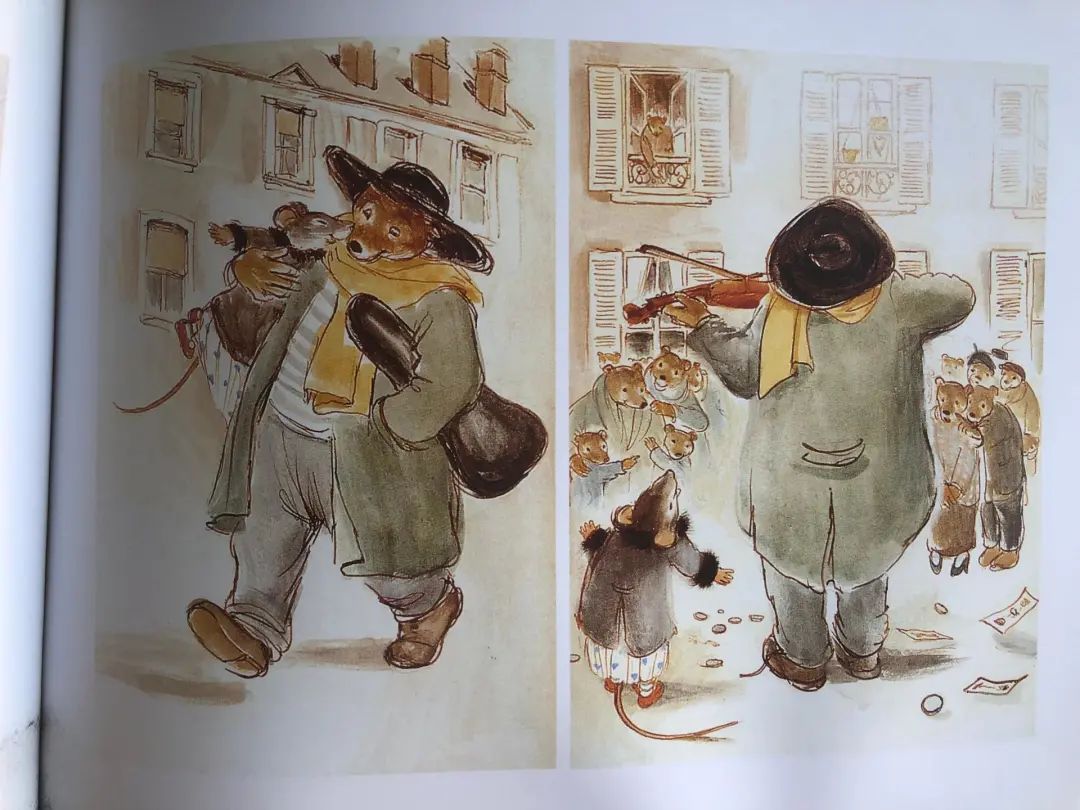 比如在繪本之中一個名為“街頭音樂家”的故事裏,賽娜和艾特家裏的屋頂漏雨了,兩人卻沒有錢修理。