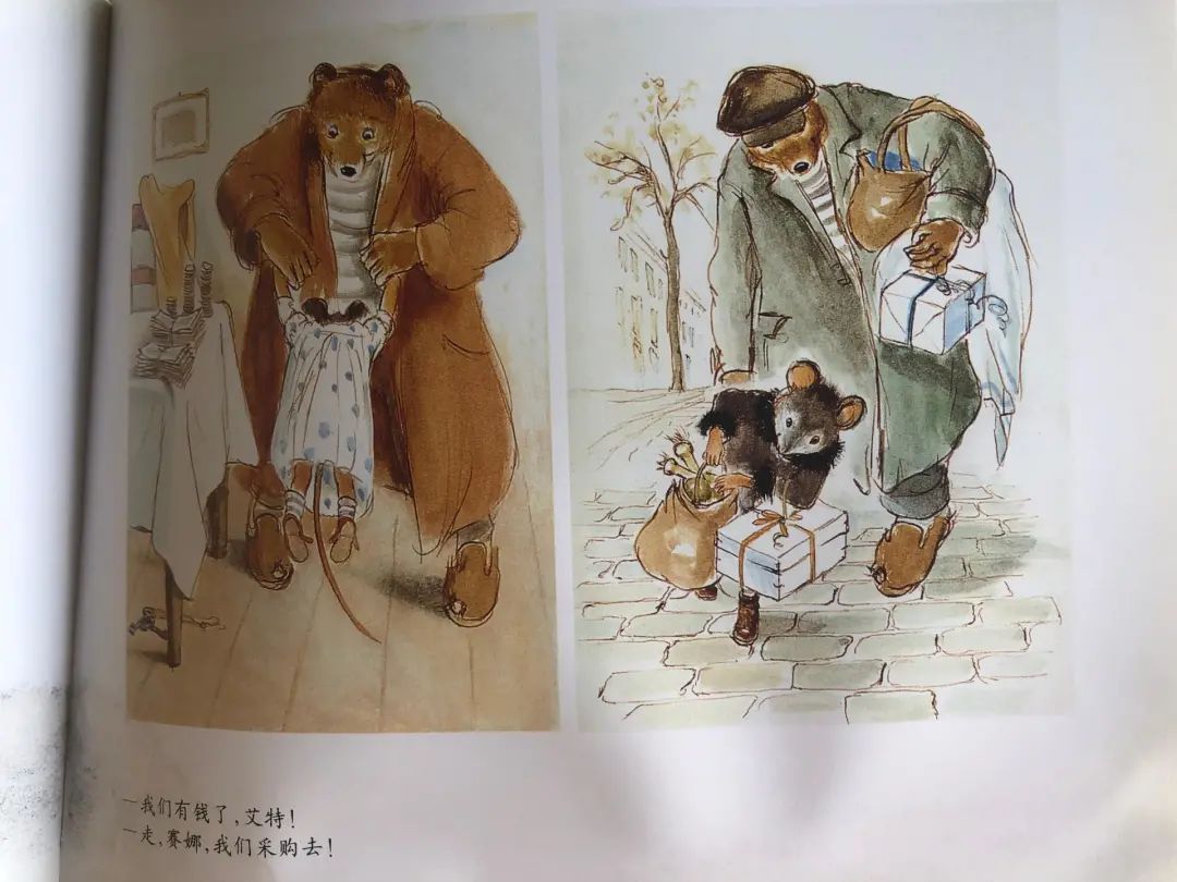 正是這種對金錢淡漠的心態,加之終身未婚的她又非常喜歡保持一定距離“觀察人類”。所以《艾特熊與賽娜鼠》的故事中總帶有一絲孤寂,卻恬淡釋然的感覺。
