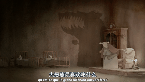 影片開頭,伴隨着一副童稚笨拙的畫,主人公賽娜正和孤兒院的夥伴們爭辯大惡熊與小老鼠是否能成為朋友——