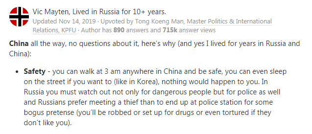 【翻譯】作為曾在俄羅斯和中國生活過的人,你更推薦哪個國家?_風聞