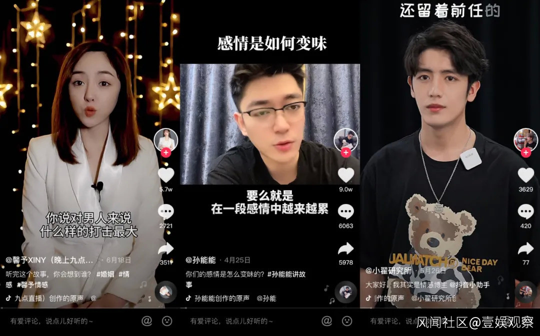 壹娛觀察(ID:yiyuguancha)與多位抖音情感博主對話後,發現他們都給出了一個行業新的趨勢,那就是在諮詢情感問題的人羣中,男性居然開始侵佔半壁江山。