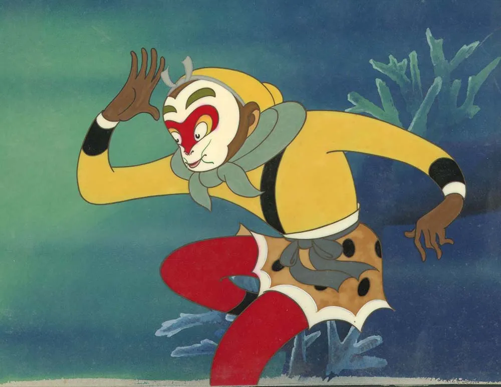 以動畫片《大鬧天宮》為例,它作為中國動畫片的傳世經典之作。其造型獨特,兼收幷蓄,包羅萬象,挖掘了多種藝術表現形式,綜合了古代繪畫、廟堂藝術、民間年畫的特色。又融入中國傳統戲曲精湛的表演藝術技巧,將家喻户曉的孫悟空形象躍然銀幕,使得動畫藝術完全達到一種審美的境界。