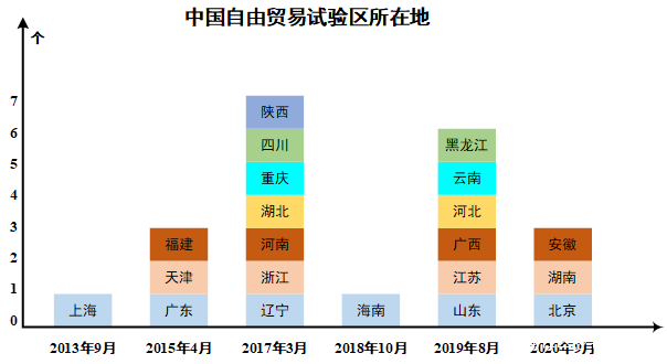 經近8年發展,我國共建立了21個自貿試驗區,包括中國(廣州)自由貿易試驗區、中國(四川)自由貿易試驗區、中國(海南)自由貿易試驗區、中國(北京)自由貿易試驗區等。