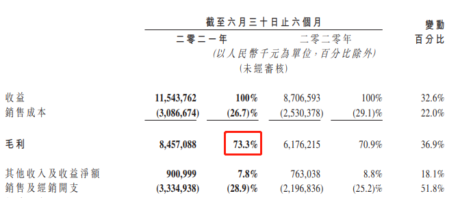 在本期半年報中,飛鶴的毛利率已經超過70%,在國內奶製品企業中稱得上是“鶴立雞羣”。同期對比,蒙牛的毛利率為38.24%,伊利的毛利率僅37.4%,能夠與飛鶴毛利率相媲美的企業,恐怕只能在隔壁的白酒行業中找到。
