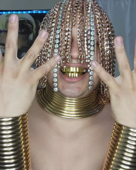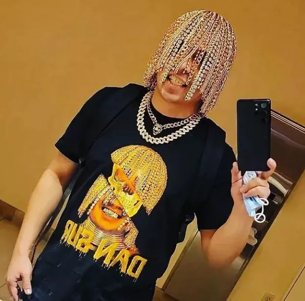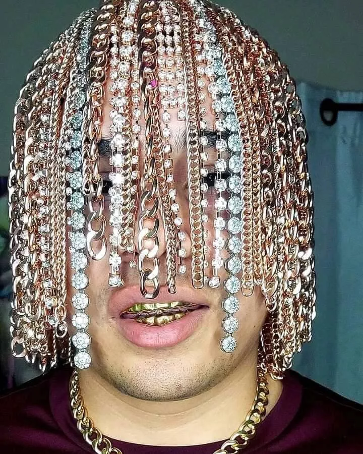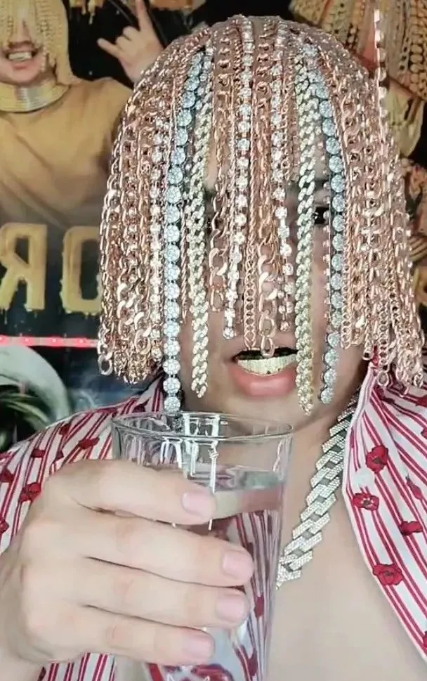 這位來自墨西哥的老哥整了一套十分極端的造型,他自稱是**“這顆星球上第一個用大金鍊子做頭髮的説唱歌手”**。