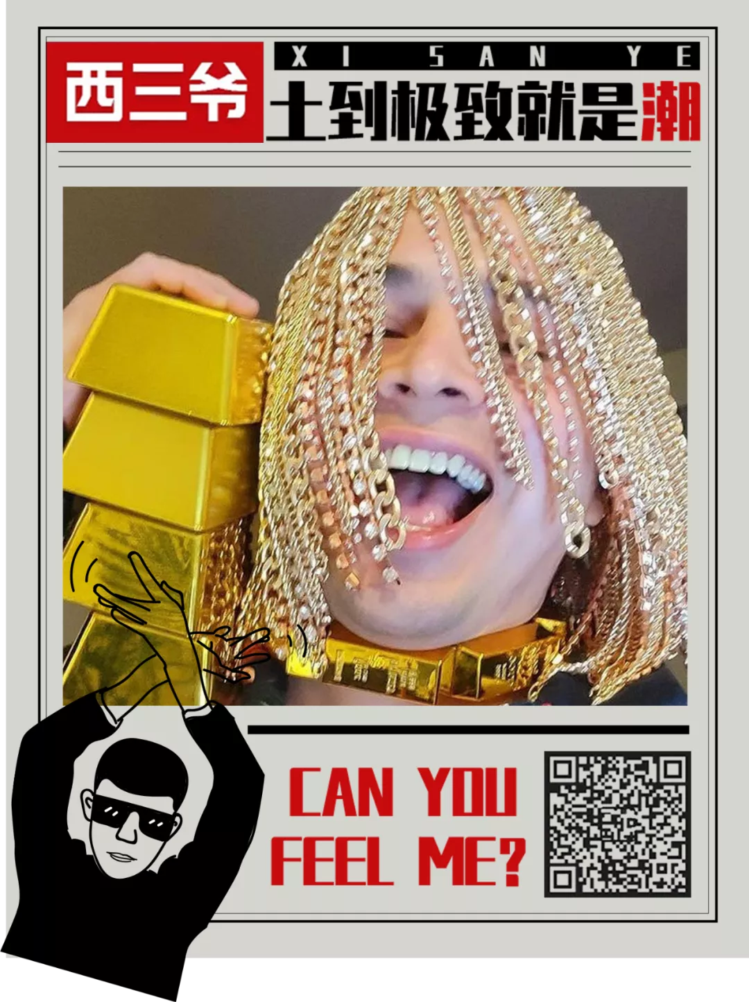 為了把自己這該死的氣質更好地展現出來,他後來又給自己整了副大金牙,簡直可以説是“全副武裝”,從頭到嘴全部金閃閃的。