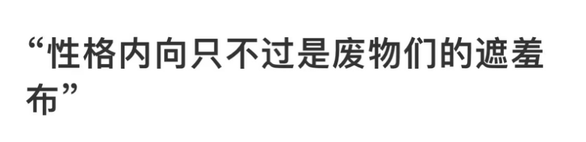 不久前看到一篇文章,題為“性格內向只不過是廢物們的遮羞布”。