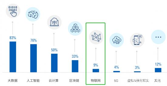 根據互聯網金融協會2021年的調研數據顯示,金融企業中,大數據、AI、雲計算仍然是被主要應用的金融科技,而物聯網應用只有9%。