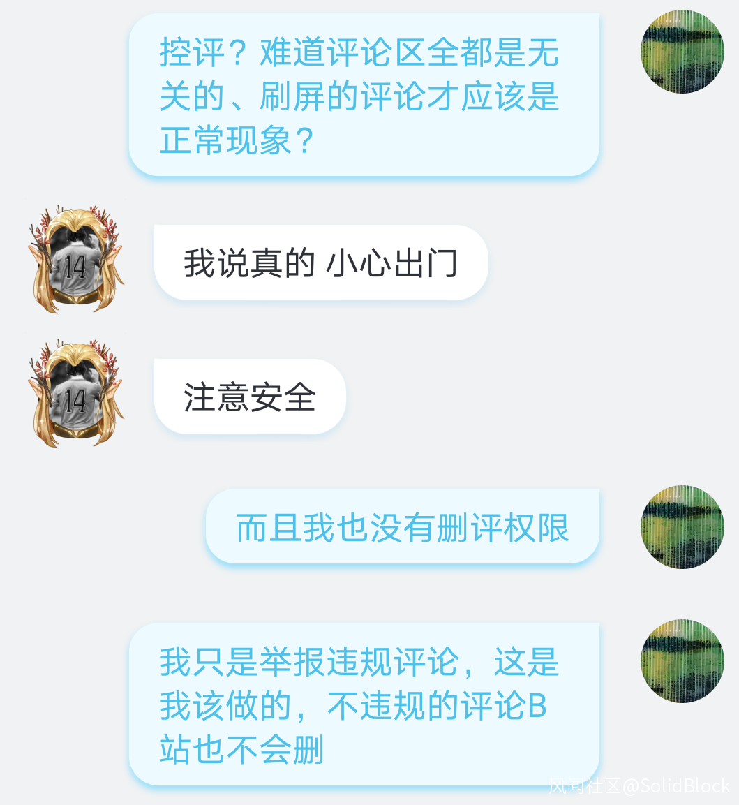 此外,我還不得不保留一種推測,那就是,嗶哩嗶哩的評論區可能被一些勢力利用從而達到不可告人的目的。因此,我還想建議嗶哩嗶哩繼續優化評論區機制,同時要特別關注“養號”行為,並提高入站門檻,加強社區管理,及時回應網民關切,以維護嗶哩嗶哩良好的評論區風氣和秩序。
