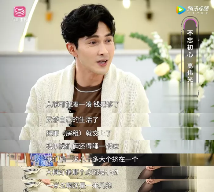 沒錢的時候他跟朋友合租在一起,兩個大個子擠在一張牀上的錢,還是湊了好久湊出來的。