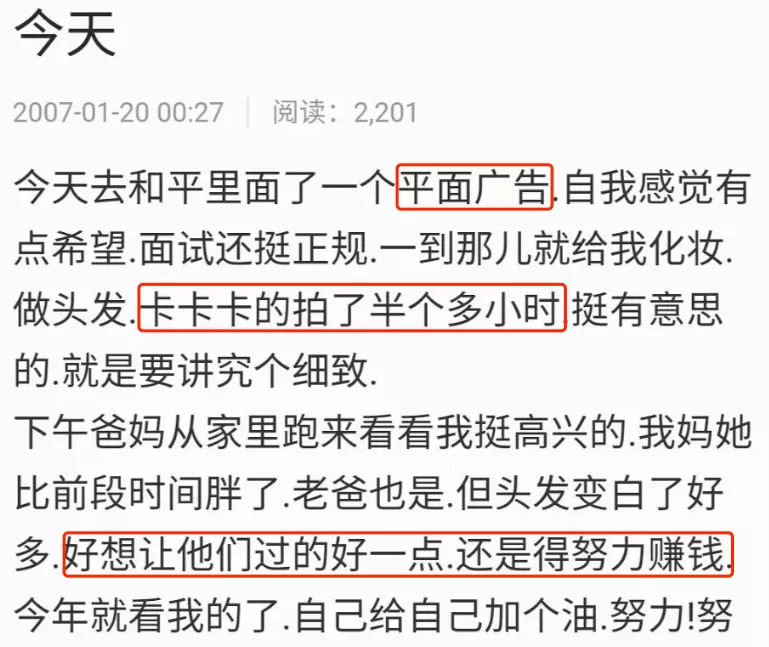 窮的時候,他博客裏寫得最多的話就是,希望多賺點錢,讓父母過得好一些。