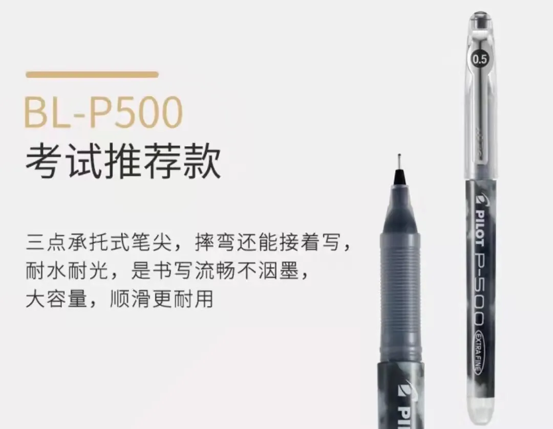 百樂BL-P500款式,提到使用三點承託式筆尖,書寫流暢不洇墨,而非不易洇墨,每個功能的描述,都有具體依據作為描述支撐,而不僅是形象概括化的描述。