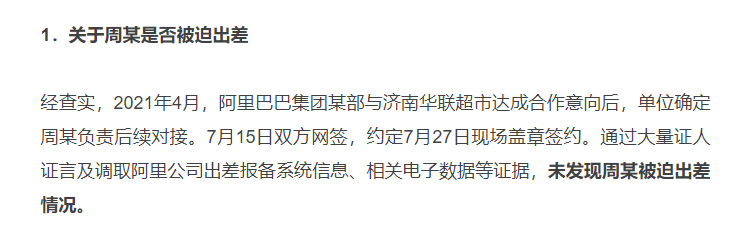 通過大量證人證言及調取阿里公司出差報備系統信息、相關電子數據等證據,未發現周某被迫出差情況。