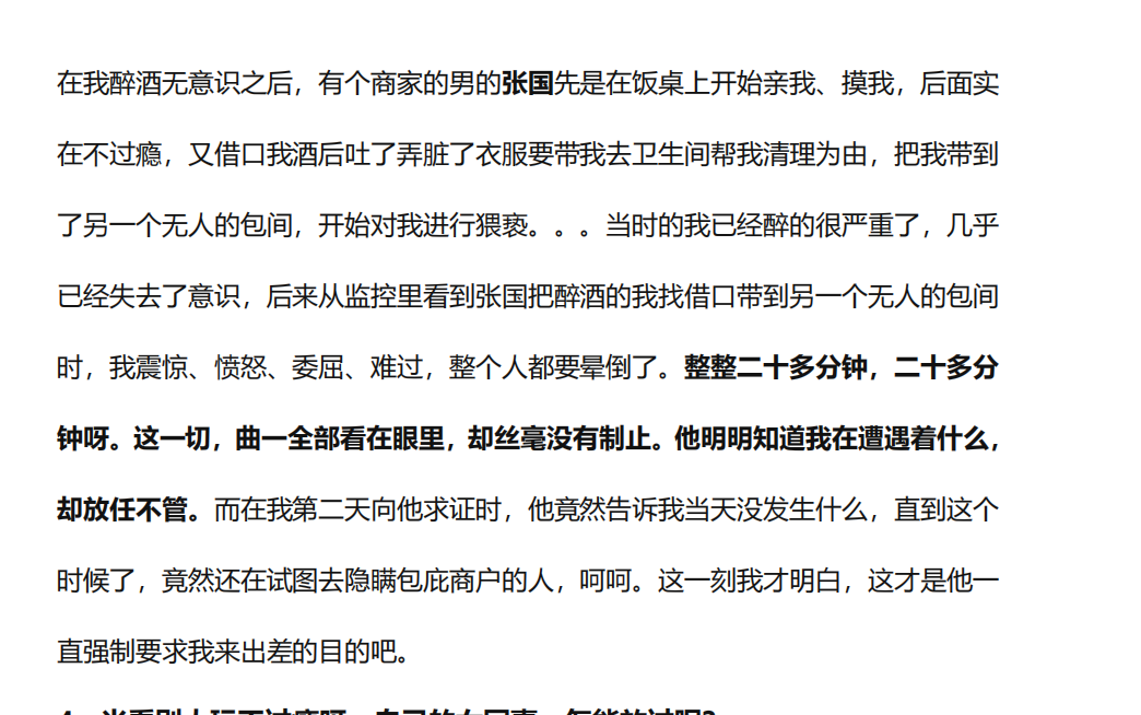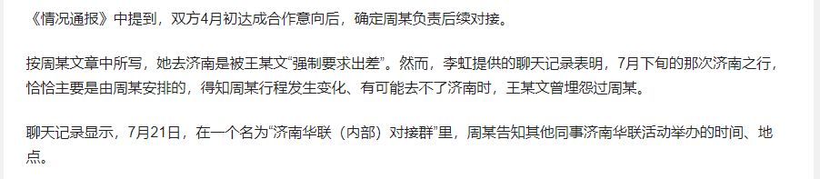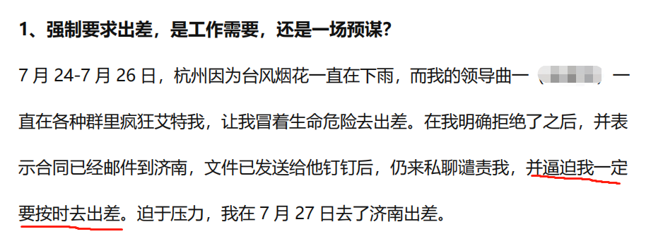 阿里周某在最早的PDF裏,表示那次出差是王某文逼迫她,強制她一定要去的。