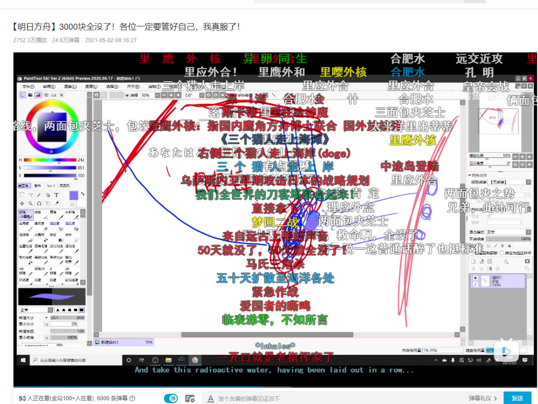 之前B站上還有個UP主,喝多了在直播裏表達對日本排放核廢水的不滿,邊哭邊嚎“50天啊,全完了!”(意思是核廢水57天能污染全球)