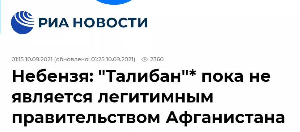 據俄羅斯媒體報道,俄羅斯常駐聯合國代表涅邊賈9月9日對記者表示,阿富汗塔利班組建的政府暫且不是合法的阿富汗政府。涅邊賈説,俄羅斯將關注塔利班如何管理國家和履行承諾。他還説,國際社會也將關注塔利班是否會履行義務,是否會按照承諾打擊恐怖主義和保障包括婦女權利在內的人權。他最後説道:“我們將拭目以待,現在就作出判斷為時過早。”