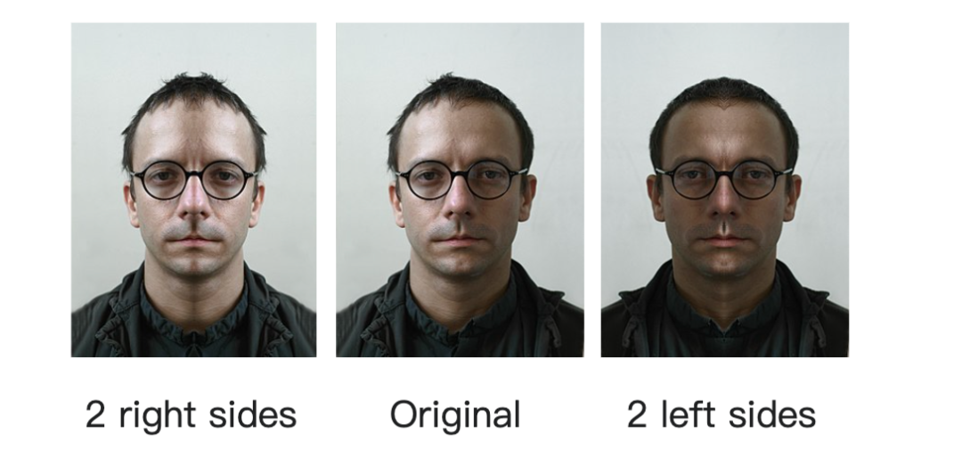 不對啊,臉不是左右對稱的嗎?兩隻眼睛、兩個鼻孔。就算不是完美對稱,也不可能達到肉眼可見的差異啊。有沒有翻轉過影響很大嗎?你可以這樣試一試: