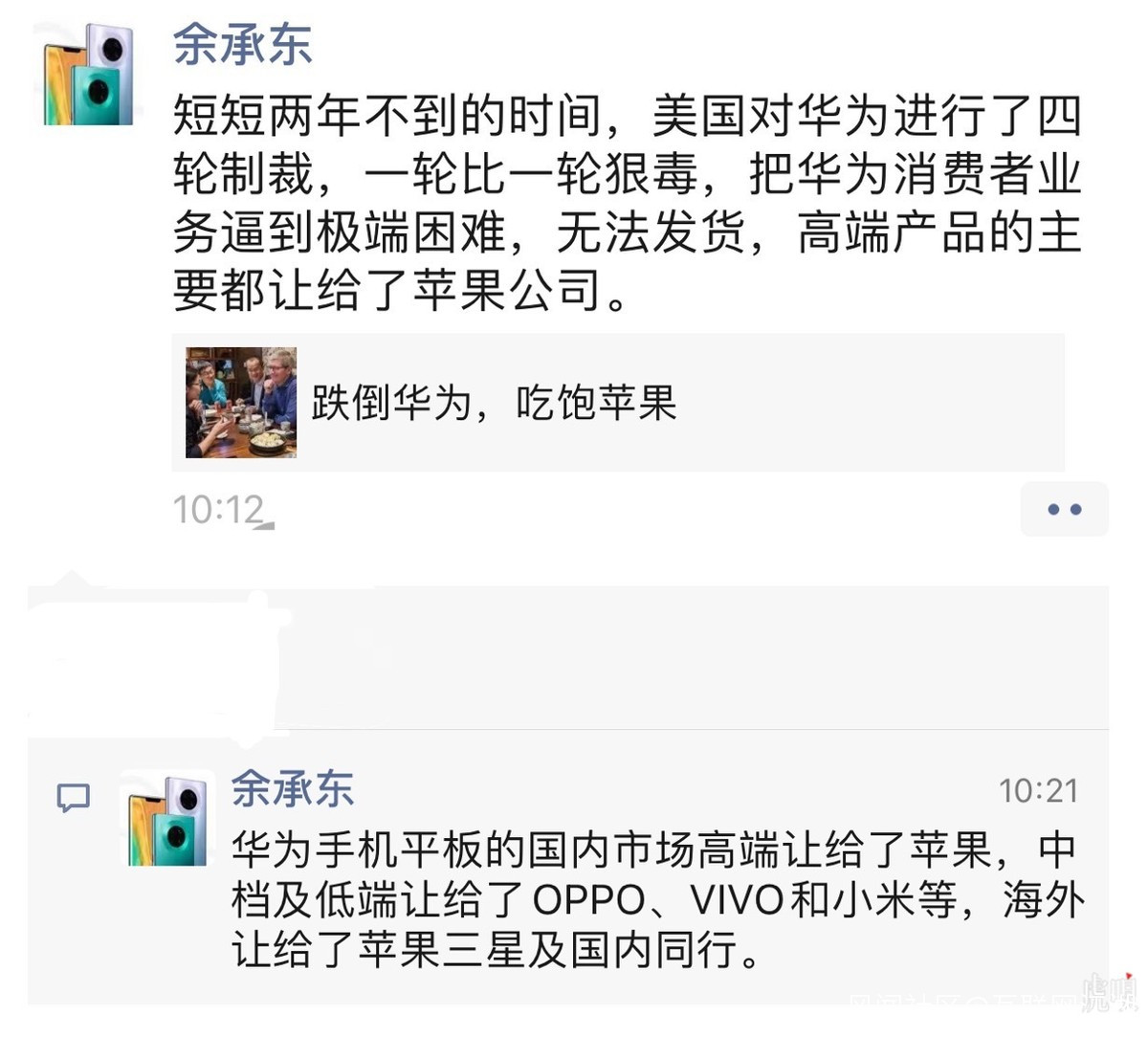 “華為手機、平板的國內市場,高端讓給了蘋果,中端及低端讓給了OPPO、vivo 和小米等,海外讓給了蘋果、三星及國內同行。”華為消費者業務CEO餘承東於今年5月在朋友圈表示。華為缺位的高端手機市場,為何會成為一塊兵家必爭之地?