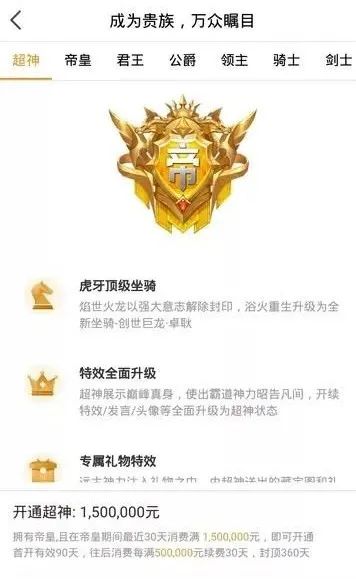 在如何刺激“土豪”消費上,鬥魚虎牙等平台幾乎已經傾盡全力。設置等級明顯,牌面不同的身份標識,如“騎士”、“君王”、“帝皇”等,充值消費到一定數額,甚至會有官方親自聯繫,為土豪定製入場特效,甚至在相關羣組中給大哥加上管理員的權限,讓其盡享尊貴的身份帶來的榮光。