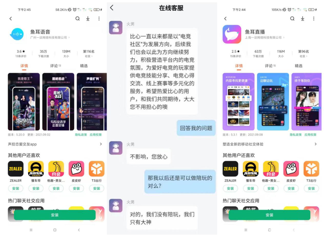 其次,雖然比心App被下架,但是與其相關的“魚耳語音”和“魚耳直播”仍可以下載。可見,哪怕比心一時半會兒無法整改上線,也已經為平台用户轉戰留好的退路。