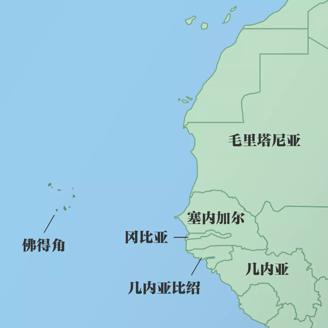 ▲ 佛得角位置示意圖。佛得角是位於北大西洋中部的西非島嶼國家,由10個火山島組成,具有優越的地理位置、穩定的政治環境和豐富的海洋資源。