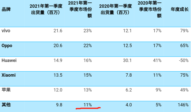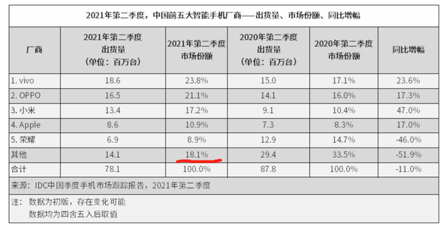 可以清晰看出,當下對於魅族此類被統計為“其他”的廠商而言,窗口正在打開。