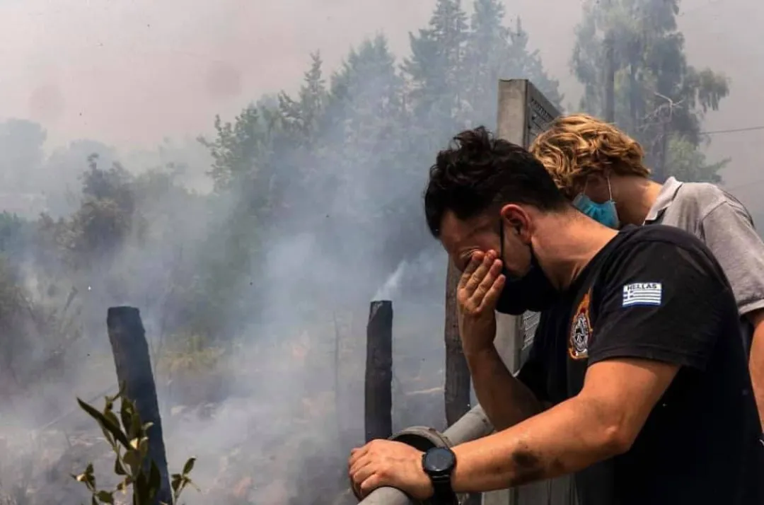 大量的森林在燃燒,農田、房屋被毀。埃維亞島多個地區不得不大量疏散居民,這些世代生活於此的人們,在火焰的威脅下只能被迫離開家園。火勢席捲希臘首都以北20公里左右的山林地區,又向西蔓延,火災帶來的熱浪讓氣温連日超過40攝氏度—高温及乾燥又反過來再次助長了火災的氣焰。