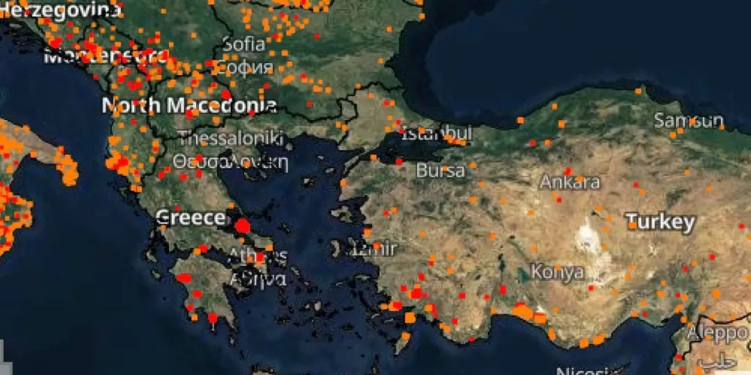 希臘不是今年第一個遭遇山火的環地中海國家—土耳其、意大利、黎巴嫩、西班牙、摩洛哥等國,也在近期紛紛經歷嚴重的森林大火。從衞星雲圖上看,南歐不再是“小清新”的、令人放鬆的蔚藍,而是成了一片紅海。