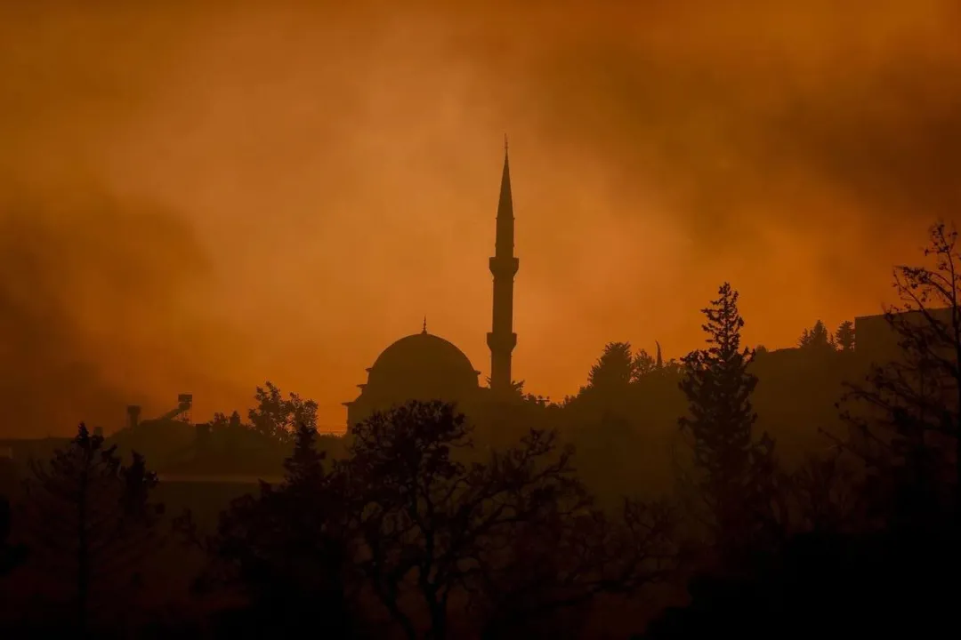被濃煙包圍的土耳其清真寺