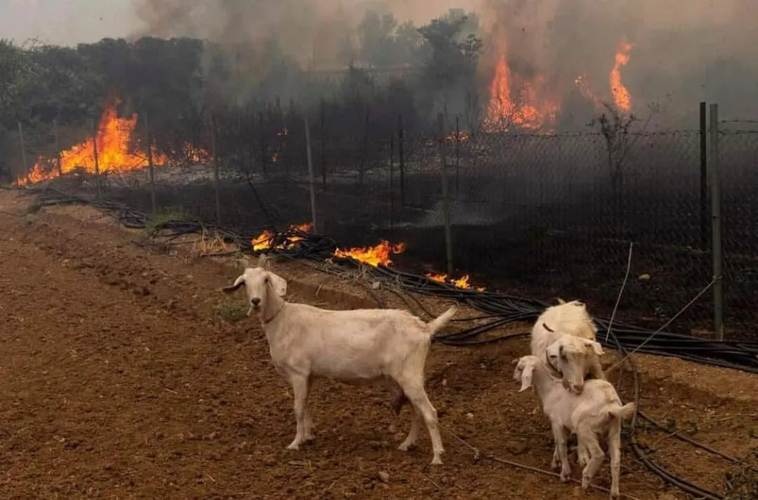 被山火圍困的牲口
