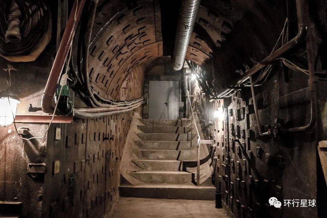 進入地堡之後,走在長長的隧道里,神秘感油然而生。隧道的牆體是厚厚的防爆金屬板,上面是弧形的穹頂,走在裏面,不時還能聽見上面地鐵列車隆隆駛過的聲音。