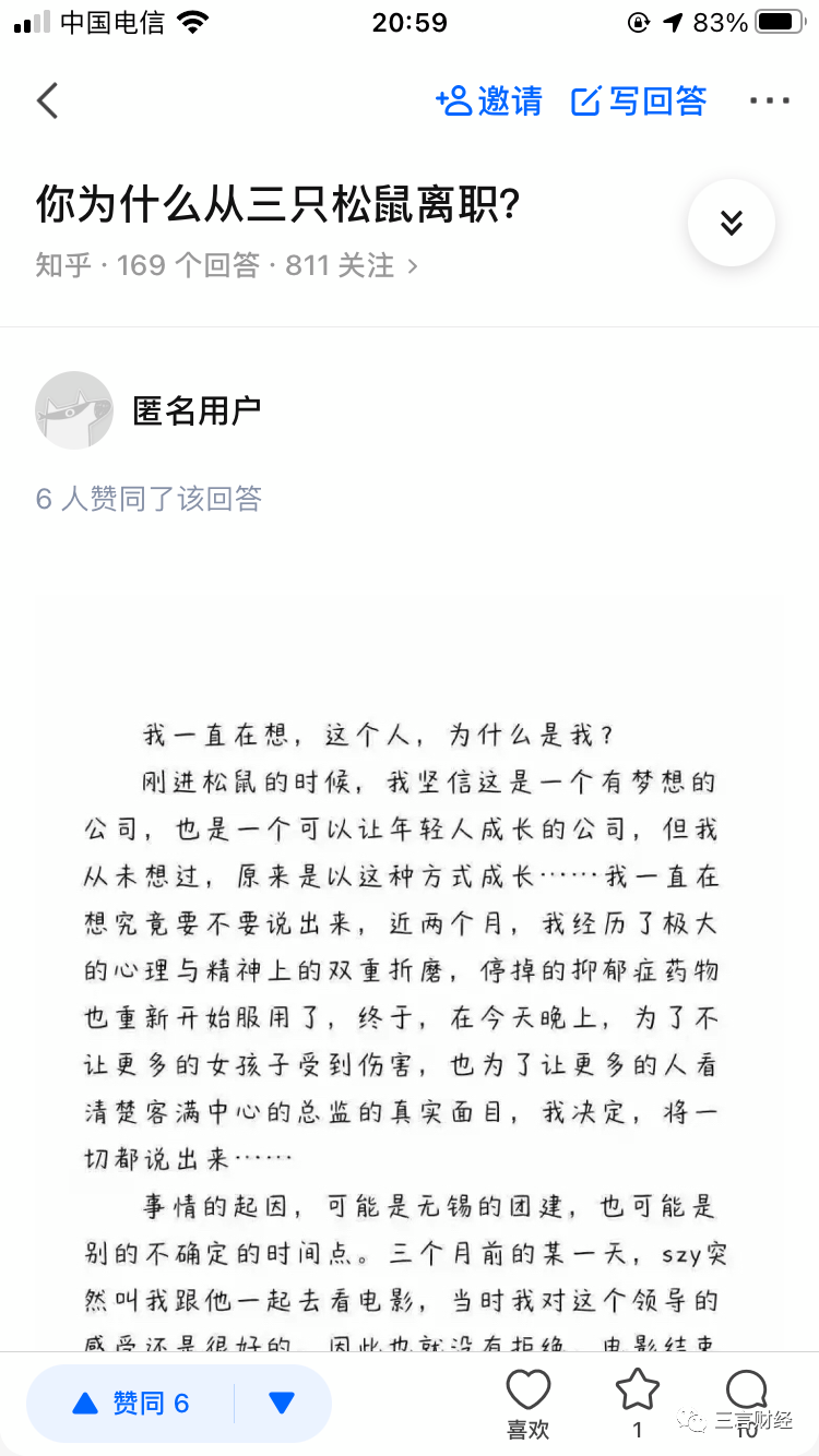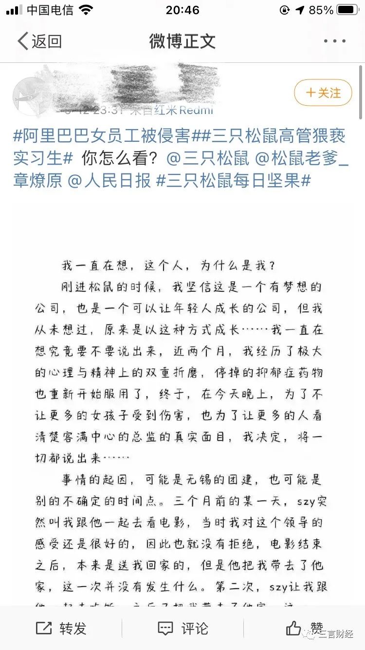 傳三隻松鼠某總監猥褻實習生致其抑鬱割腕,回應:會進行核實_風聞