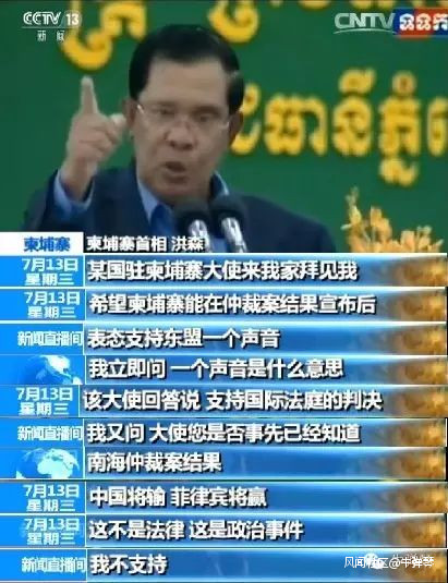 洪森公開力挺中國,説:所謂南海仲裁不是法律,是政治事件,我不支持。