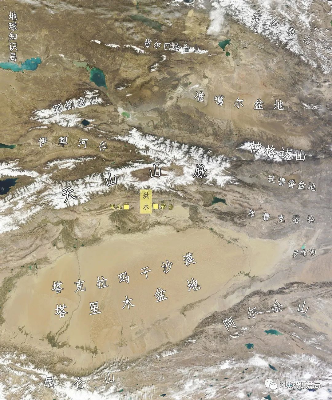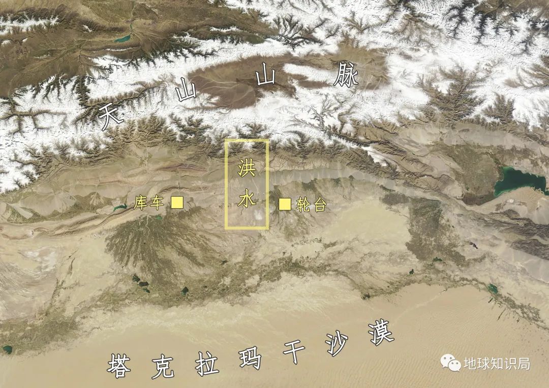 這次的洪水出現在庫車至輪台的交界區域,位於天山南坡綠洲的荒漠地形區,距離塔克拉瑪干沙漠腹地仍有一段距離,並非傳聞説的塔克拉瑪干沙漠遭遇了洪水,充其量只能算是沙漠北緣地帶發生了洪災。