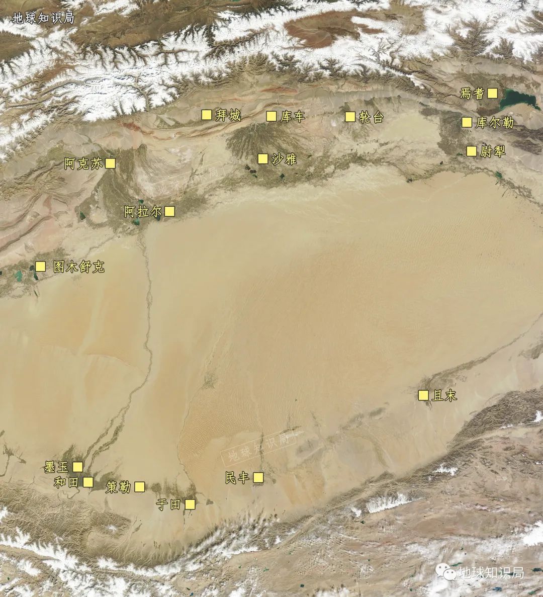 而且北緣的綠洲規模明顯比南緣要大(天山的緣故)