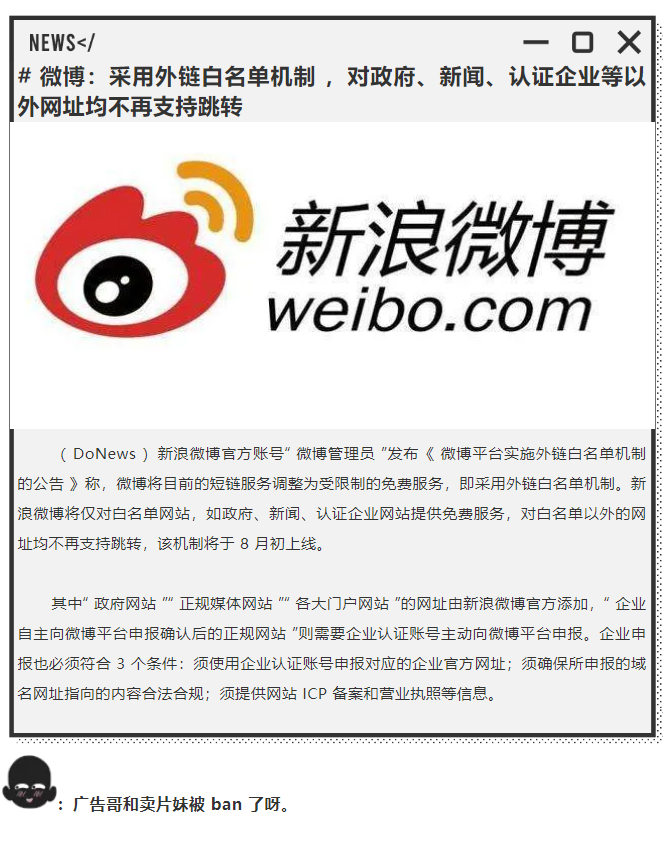 **同部門的微博運營,也經常在吐槽微博的外鏈機制,**明明是個正常鏈接,卻也常常出系統認為是廣告而夾掉。