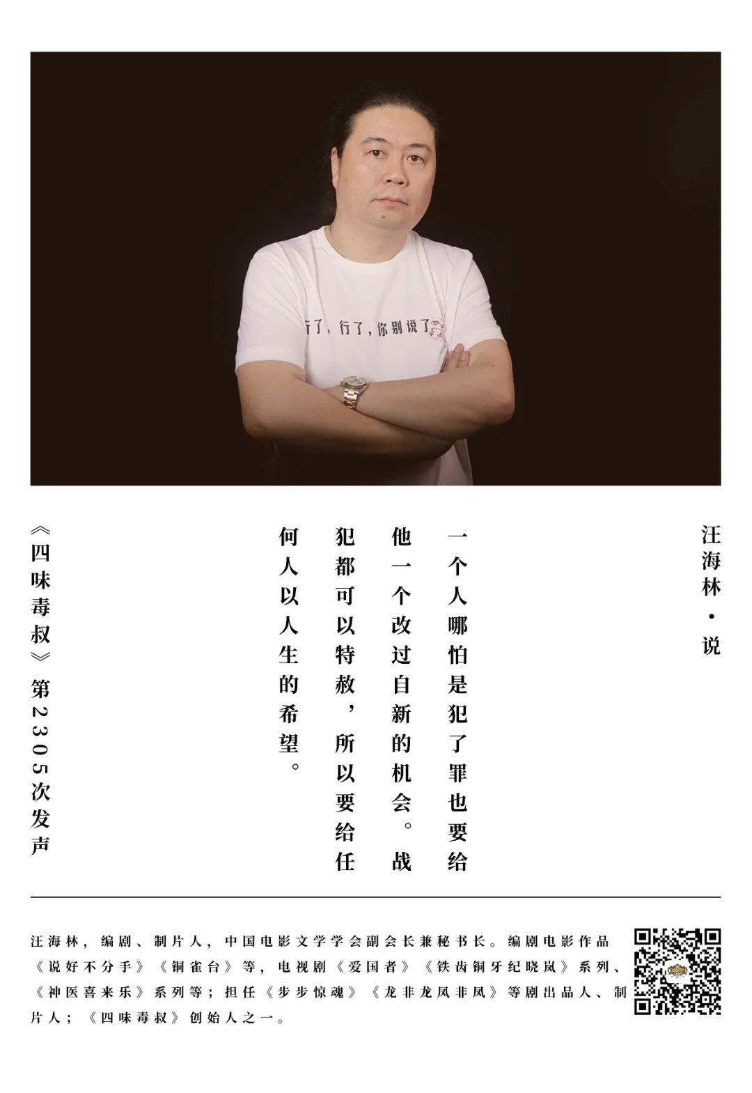 **汪海林:**是的是的,再一個就是犯了錯誤,哪怕是犯了罪也要給他一個改過自新的機會。戰犯都可以特赦,就是説要給任何人以人生的希望,可能他的事業失敗了,但他的人生他也在努力,或者改變呢,還是有希望的,我覺得這樣呢,會好一些,它也是一個社會管理的一個良性的一個機制,對。
