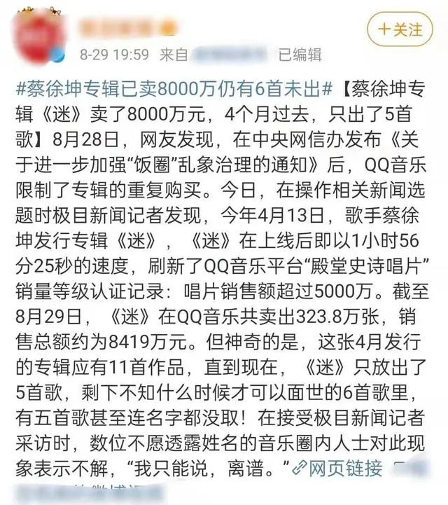 **汪海林:**現在應該看到很明顯方方面面,主管部門,還有相關部門都在出台一系列的措施。這些措施你可以看到是穩、準、狠的,它都是有針對性。比如説,解散線上的粉絲組織,粉絲羣都被限制了,粉絲打投的環節也去掉了,包括一些數據的統計方式和評獎方式都在改變,那就是釜底抽薪,我覺得是釜底抽薪。就是在根本的統計方式上進行改變。