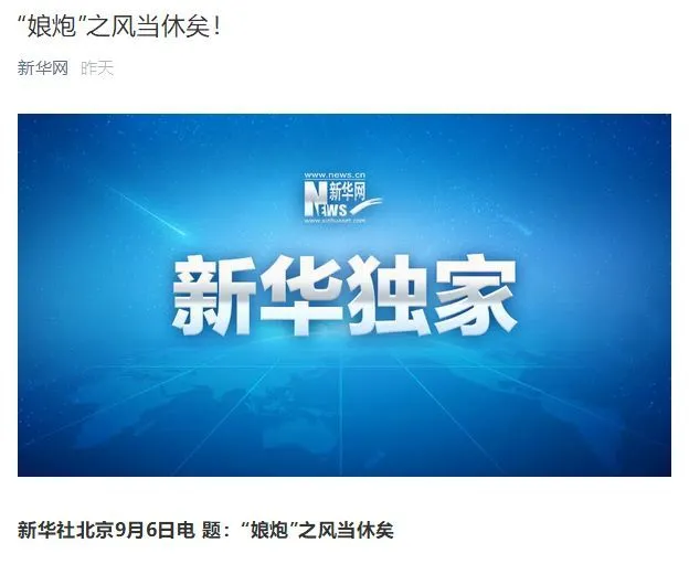 **譚飛:**嗯,那麼就是媒體現在批娛樂圈是叫“娘炮形象”,稱畸形審美,必須遏制,釋放了什麼信號?對“娘炮”一詞該如何界定,有些網友對“娘炮”產生質疑,這個詞,説貶低女性。如果把“娘炮”改成“媚粉”比較好,你怎麼看呢?