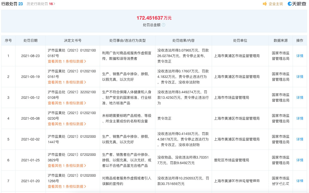 其他處罰事由還包括產品不合格、質量問題、虛假宣傳、違法延長工作時間等。